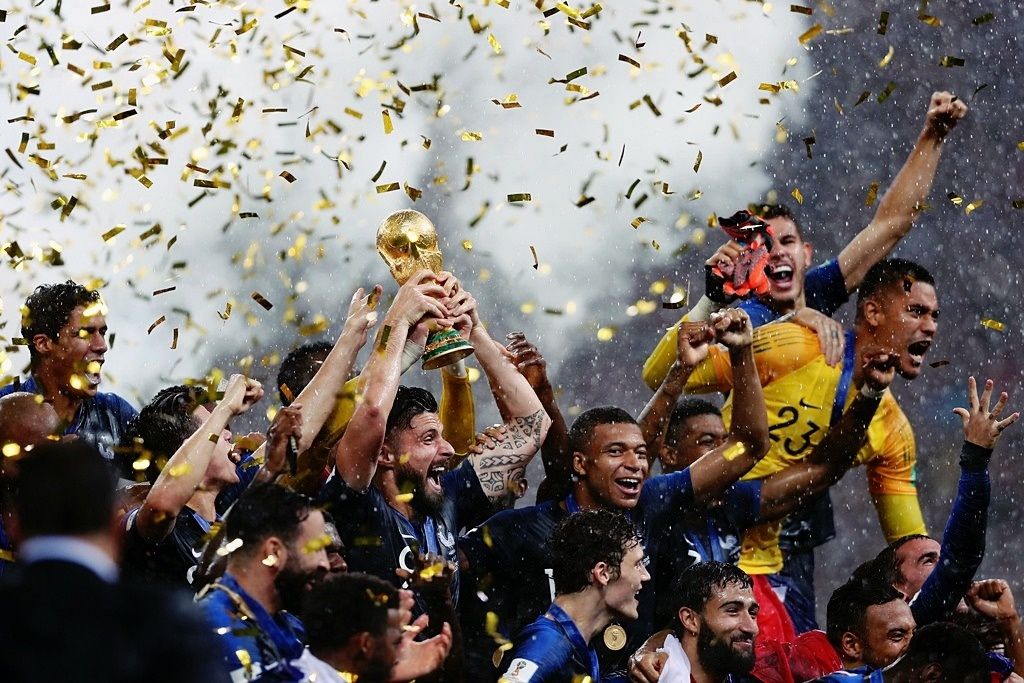22 v'la les Bleus ! Ils l'ont fait, ils sont sur le toit du monde, ils ramènent le Graal footballistique vingt après leurs glorieux aînés au terme d'un match crispant, pas flamboyant, ni mauvais ni bon. Un match bizarre où nos forces habituelles étaient restées au vestiaire, où la tension de l'événement pesait trop pour se libérer totalement mais un match où d'autres forces nous habitèrent. Du sérieux, de l'abnégation et quatre buts en finale de Coupe du Monde malgré une prestation inaboutie. Et hop, deuxième étoile. Et la joie des Mbappé, Kanté, Pogba, Griezmann, Giroud, Matudi, Pavard, Umtiti, Varane, Lloris, Hernandez et leurs amis du banc se propagea à vitesse supersonique de Moscou à Lille, Paris, Croth et partout en France en attendant la descente Deschamps Elysées. Bravo à nos Bleus, à nous, Bleus, Blancs et Rouges. Tous ensemble, tous ensemble, hey, hey.