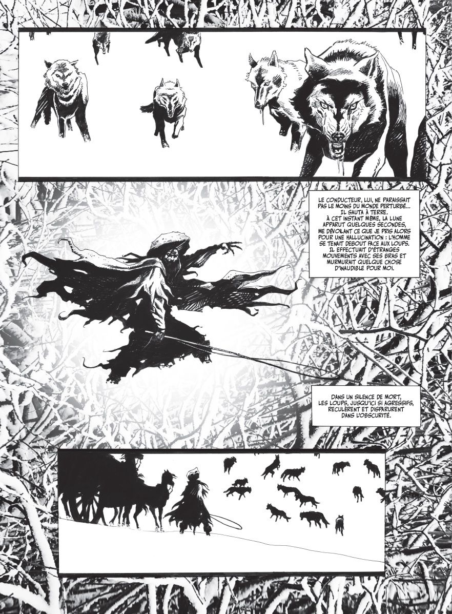 Georges Bess est un formidable conteur, virtuose à la fois par la qualité incroyable de son graphisme mais aussi par son utilisation de l'espace. Comme Sergio Toppi, Bess se permet tout. Il déstructure, reconstruit, nous fait voler de case en case en embarquant avec lui le lecteur. Comme un spectateur de plus de l'histoire qui se déroule sous nos yeux, nous sommes dans l'intrigue, dans la neige de Transylvanie, dans les murs froids du château du Comte aux dents longues.